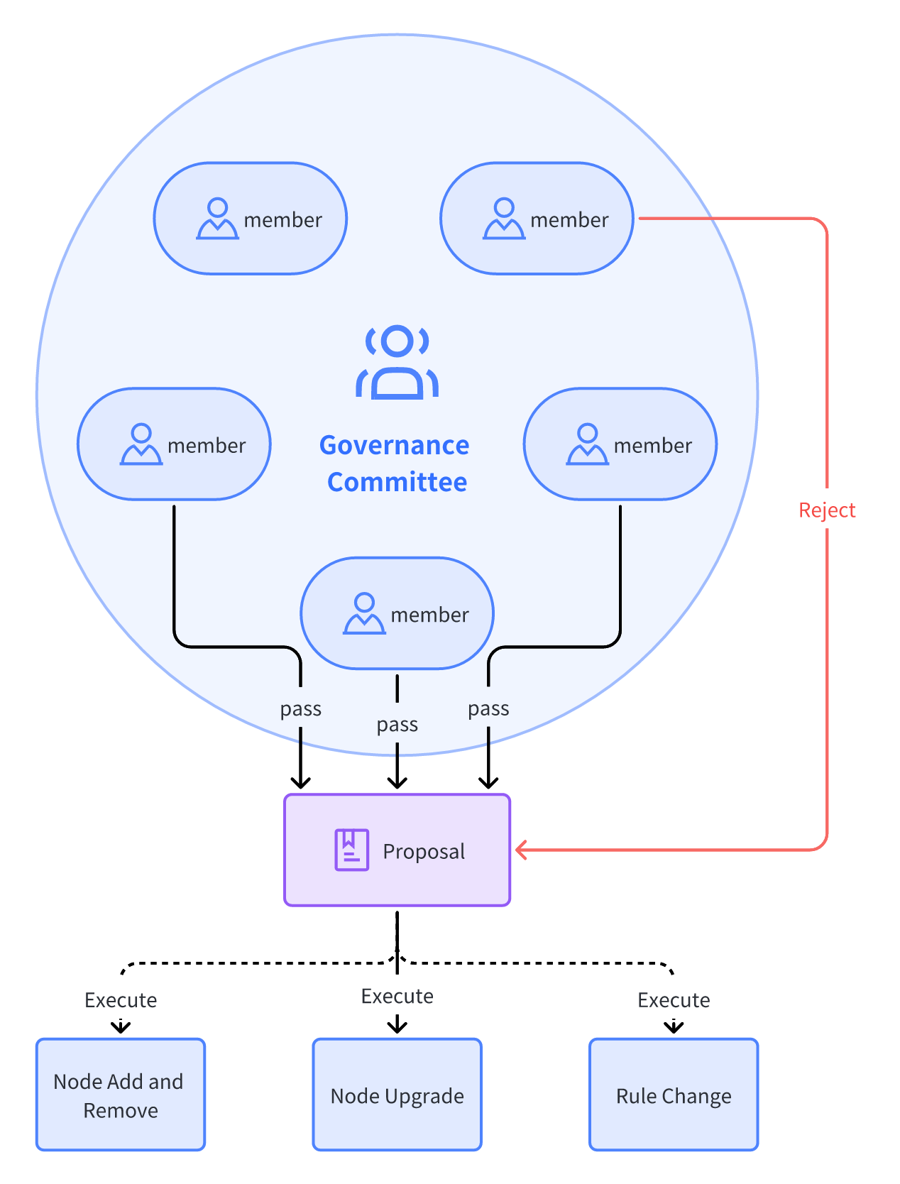 Skip to main contentAfter a proposal is submitted, it is voted on by committee members. Currently, each member has a voting weight of 1, and in the future, members may be assigned different weights based on the circumstances.