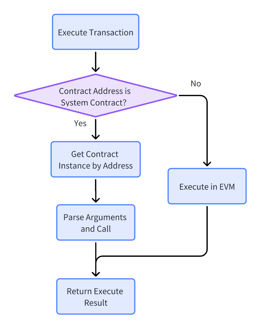When the executor identifies that the transaction’s destination address is a system contract, it directly processes the transaction within the system contract for execution.